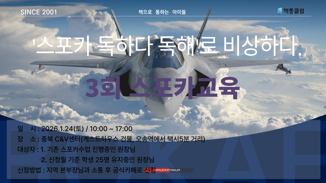 원장님들~ 안녕하세요 !!! 2026년이 사작되었습니다. 스포카 교육에도 변화가 찾아 왔습니다. 기존에 교육 받은 원장님들의 요청에 의해 실제 수업진행을 해보는 파트를 넣었습니다. 원장님들께서 원하시는 교육을 진행하려 항상 노력하는 교육팀이죠^^ 교육장소는 오송역 근처 충북C&V센터 입니다. 오송역에서 택시로 5분거리인데 걷기는 좀 무리가 있고 택시 타시는것을 추천드립니다. (정차하고 있는 택시는 장거리를 원해서 타면 서로가 조금 불편할 수 있으니 콜택시를 이용하셔서 이동하시는 것을 추천드립니다.) 제 3회 <스포카 교육> 2026년 1월 24일 토요일 오전 10시 ~ 17시 오송 C&V센터 (게스트 하우스 건물과 동일) 충북 청주시 흥덕구 오송읍 오송생명1로 194-41 'C&V센터 게스트 하우스'와 '충청북도C&V센터'는 붙어있는 건물입니다. 중앙 입구로 들어오시면 교육장은 2층에 있어요!!